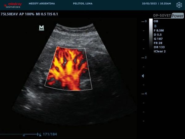 Proporciona información sobre la dirección y la velocidad del flujo sanguíneo en diferentes áreas del cuerpo del animal, lo que puede ayudar en el diagnóstico de condiciones vasculares y cardiacas.